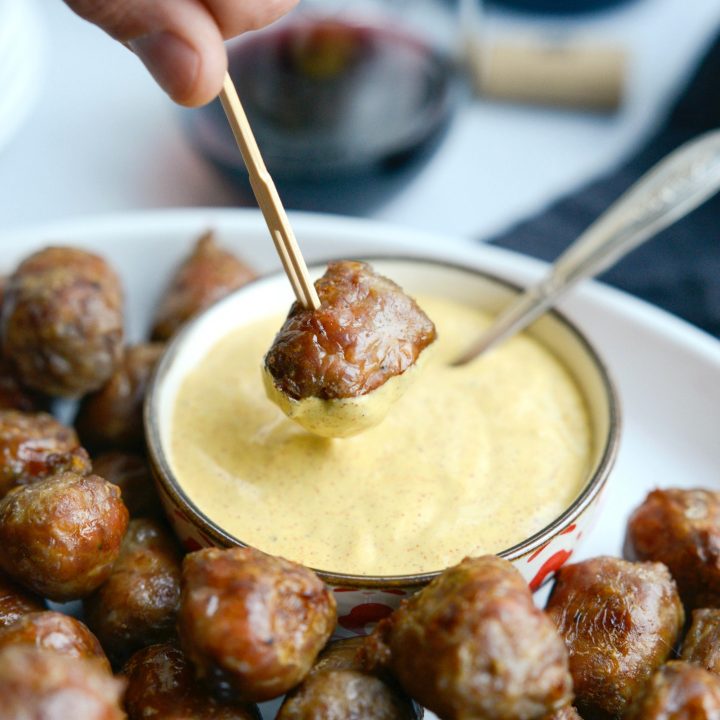 Chardonnay Italian Sausage Bites With Spicy Mustard Dip Simply Scratch
